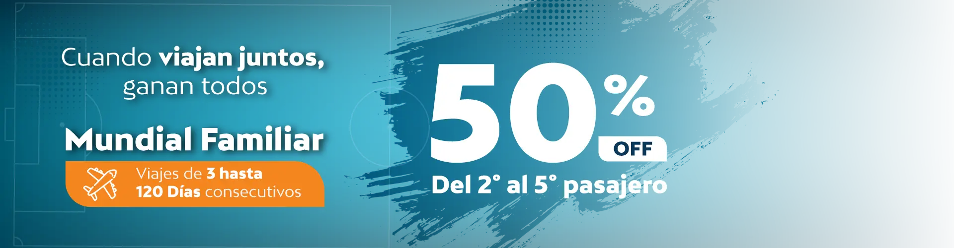 Disfruta con tu familia o amigos con más de 20 beneficios y el 50% de descuento del 2do al 5to pasajero.